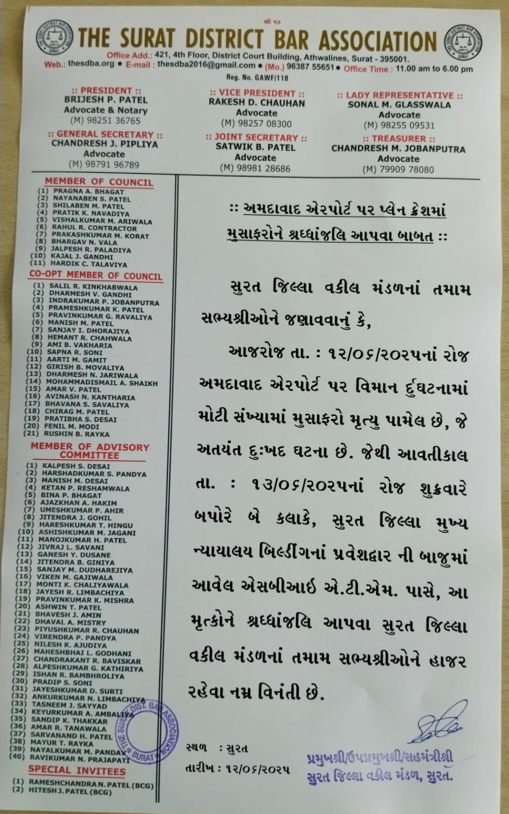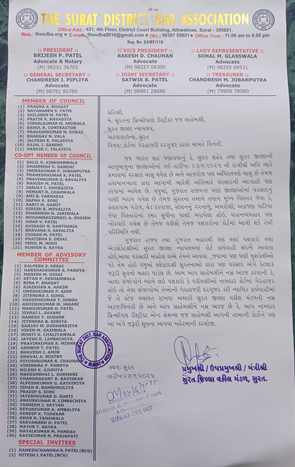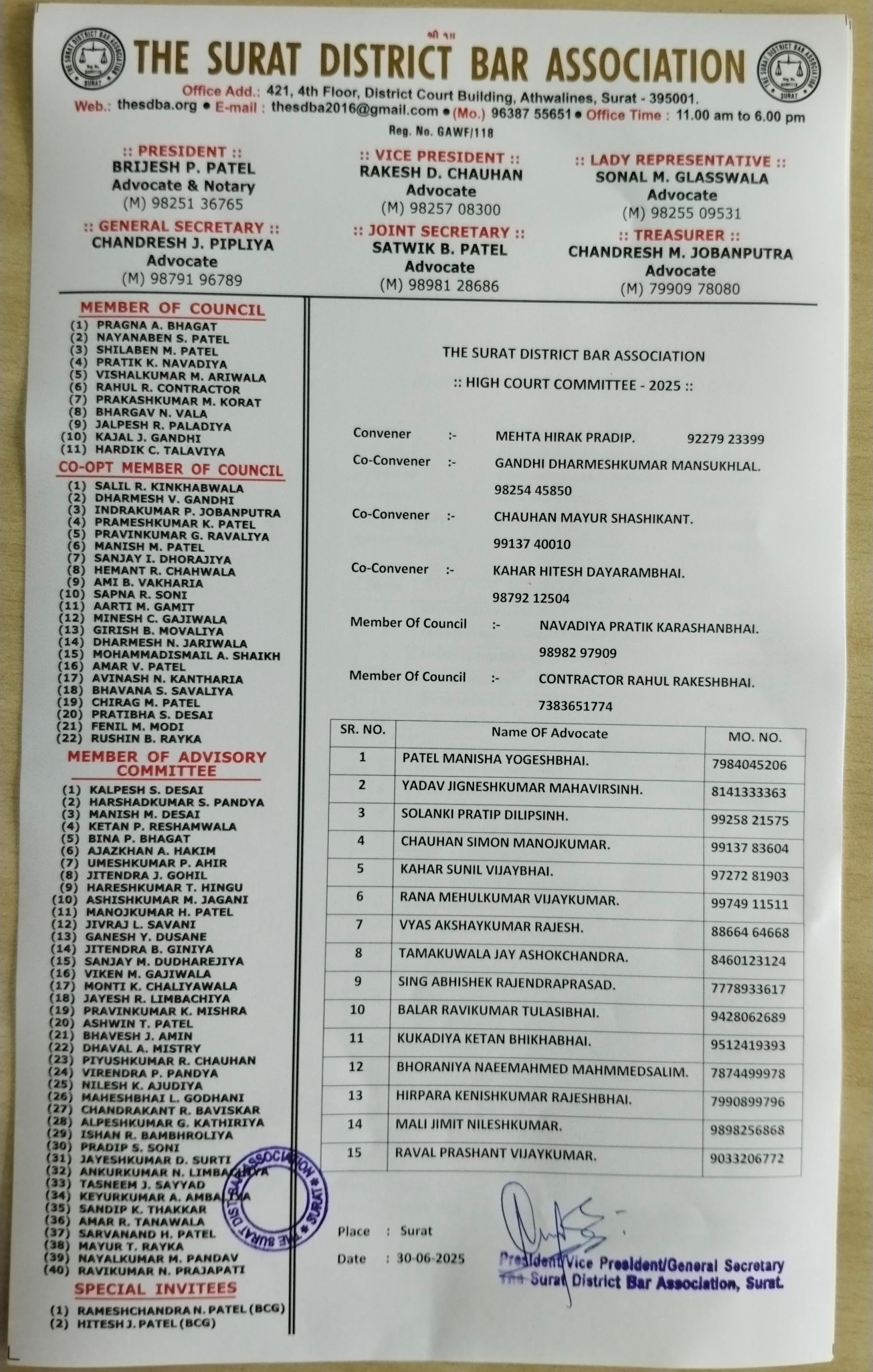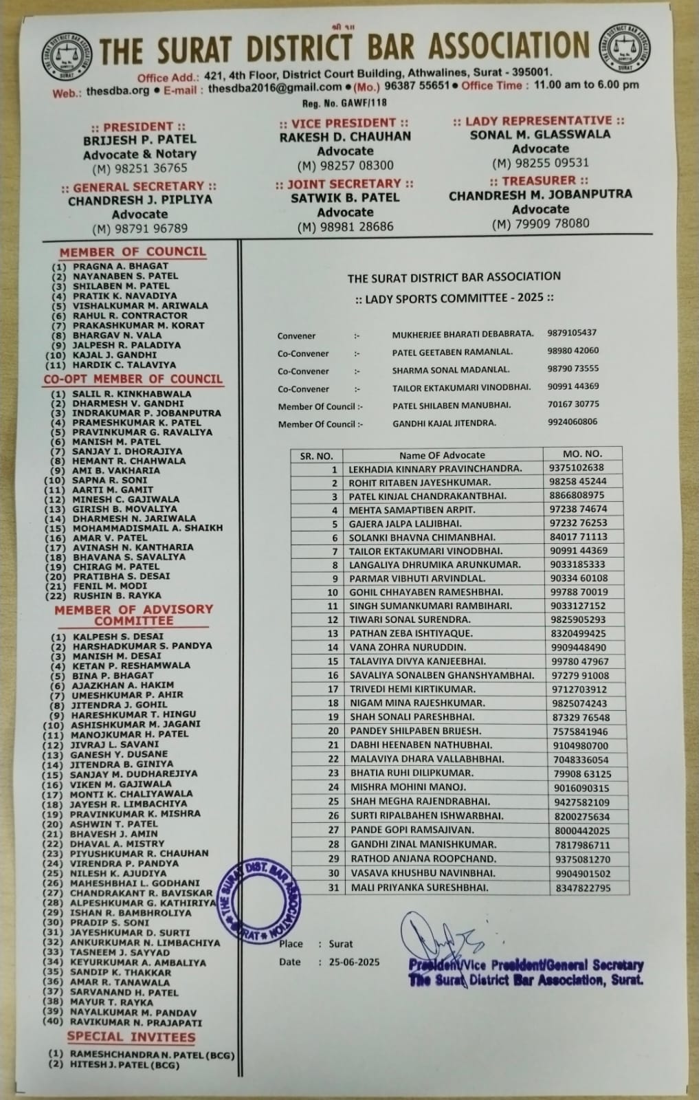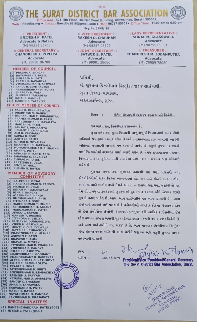સુરત જિલ્લા વકીલ મંડળનાં તમામ વકીલશ્રીઓને જણાવવાનુંકે,
