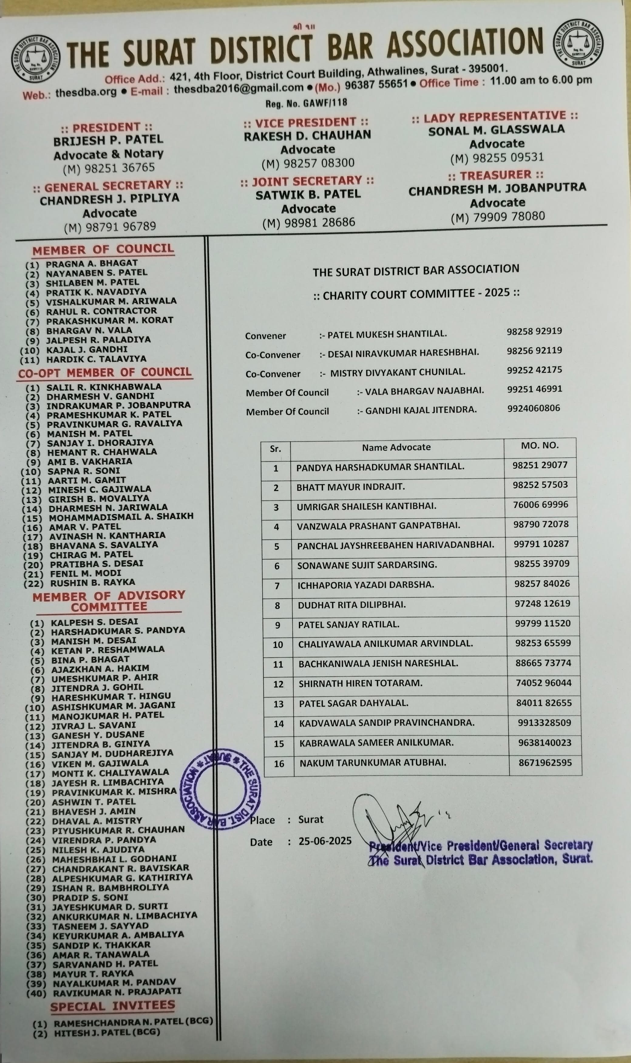 For Registration Visit Surat District Bar Association Office. Between 2pm-5pm